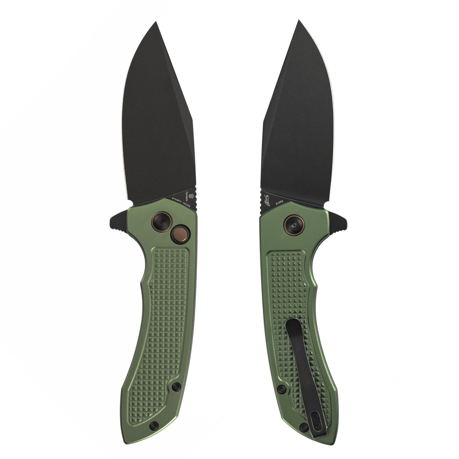 Christmas | Tenable Entity - Button Lock - 3.52'' Blackwash 14C28N - Dark Green Aluminum with Checkered Texture - Nalu Knives - B1036F2 is backordered and will ship as soon as it is back in stock.