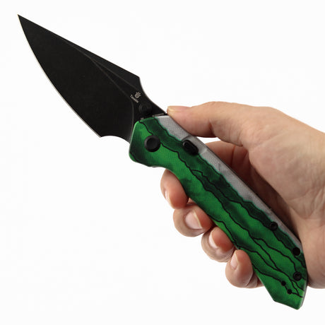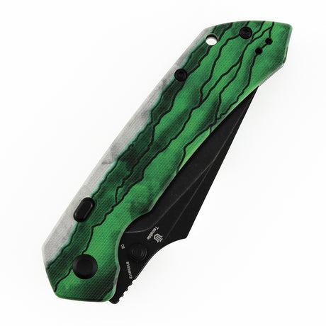 Tenable Fenrir Top Liner Lock Folding Knife| 3.4“ Blackwash D2 Blade | Jade G10 with Green Camouflage Pattern Handle | Sparrow Knife Design | B1034H13