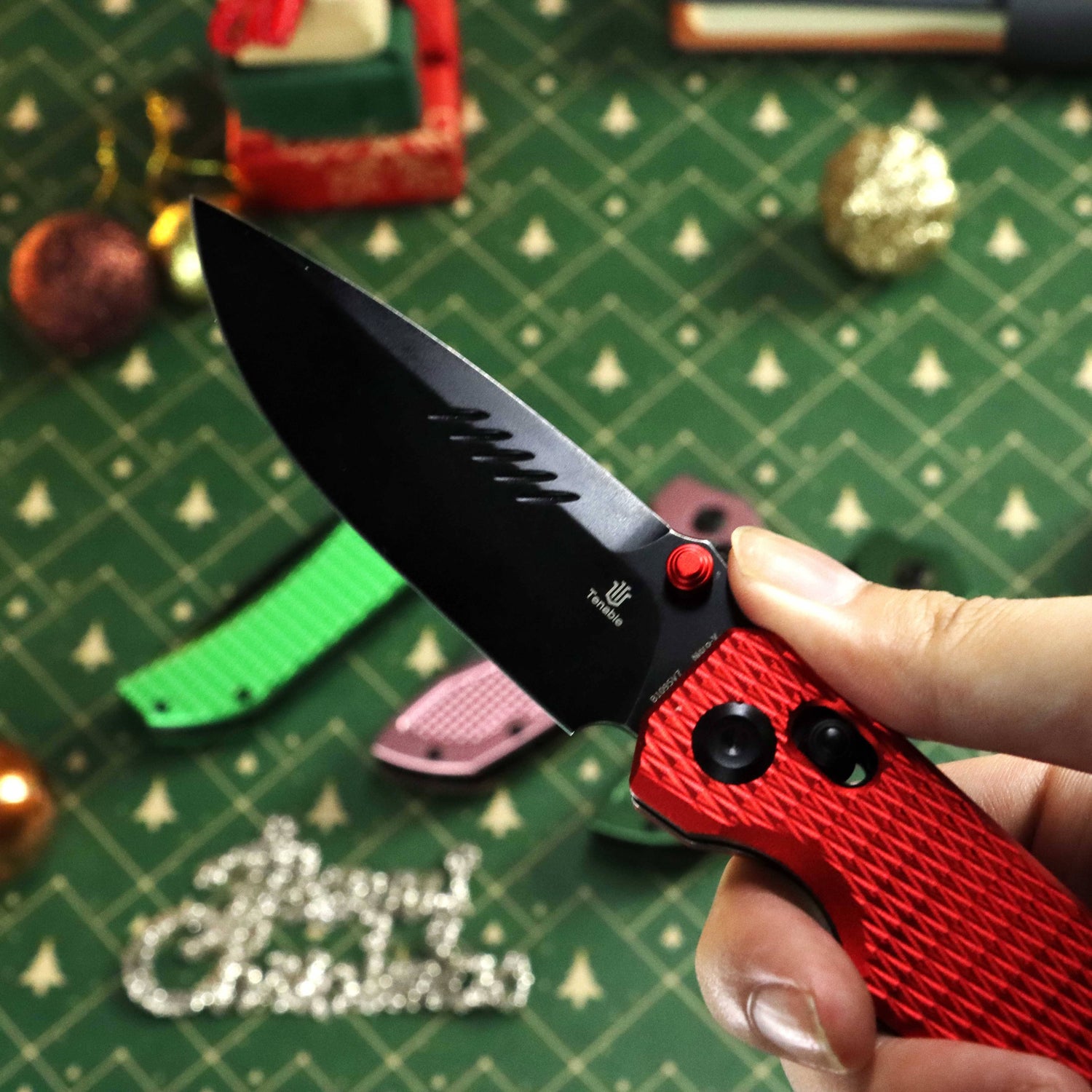 Christmas | Tenable Eaglestrike - Cross Bar Lock - 3.73'' Black Stonewashed Nitro V Blade - Red Anodized Aluminum with Diamond Texture Handle - James Lowe Design-B1095V7